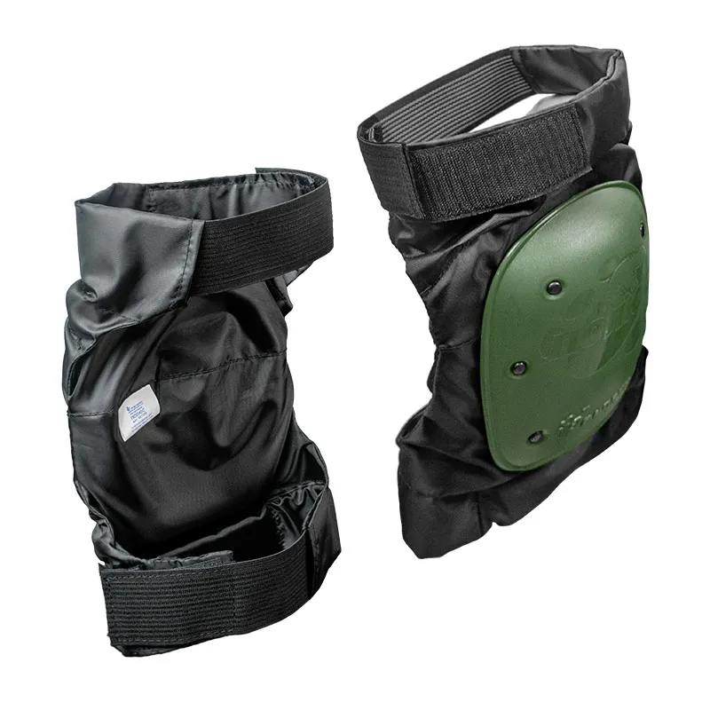 Наколенники с защитной чашкой. Обеспечивают превосходную защиту коленных суставов от избыточной нагрузки, возникающей при длительной работе. Основа наколенников изготовлена из высокопрочной синтетической ткани «Оксфорд», которая устойчива к механическим повреждениям, проста в уходе и легковесна. На внешней части наколенника закреплена защитная чашка из ударопрочного полиэтилена низкого давления. Под защитной чашкой находится амортизирующая вставка из пенополиэтилена для дополнительной защиты коленного сустава. Чашка фиксируется при помощи металлических заклепок. Крепление — широкие эластичные ленты-липучки. Наколенники одеваются поверх одежды.