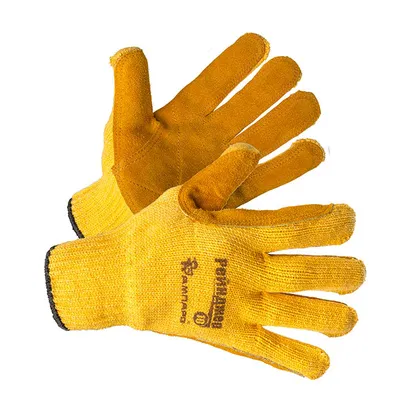 Вязаная основа перчаток изготовлена из высококачественной хлопкополиэфирной пряжи. Наладонник из спилка КРС обеспечивает надежную защиту ладони пользователя от механических воздействий (истирание, порез, прокол).