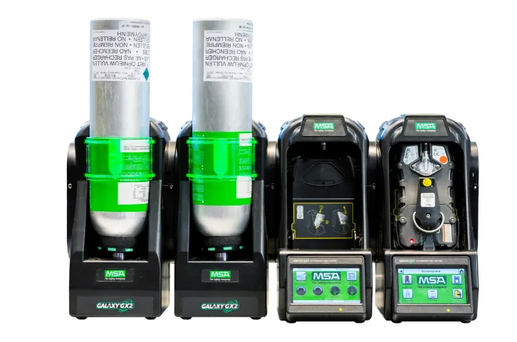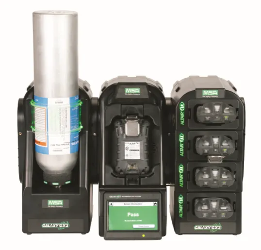 системы управления портативными газоанализаторами, включая полный доступ к данным и управление парком газоанализаторов семейства MSA ALTAIR. После установки газоанализатора семейства ALTAIR в систему GALAXY GX2 его можно автоматически испытывать, калибровать и заряжать. Эта гибкая система позволяет устанавливать до 10 испытательных станций, четырех держателей баллонов и многоместное зарядное устройство в один блок системы GALAXY GX2.