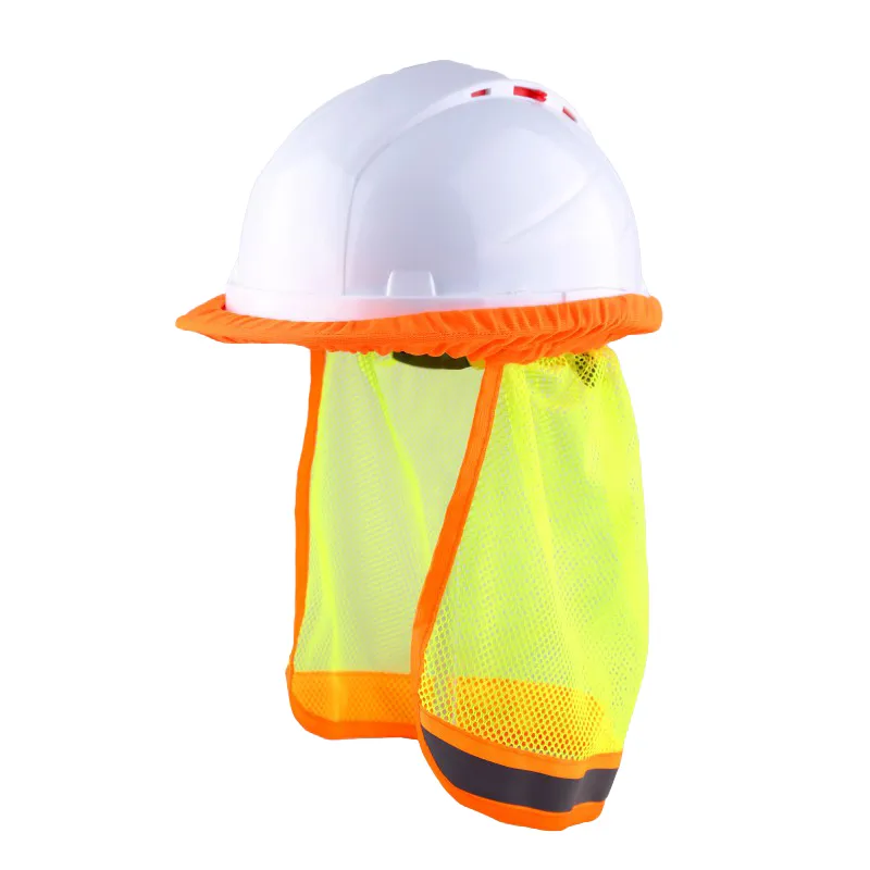 Пелерина солнцезащитная на каску выполнена из сетчатой трикотажной ткани сигнального цвета лайм, по краю пелерины имеется светоотражающая лента.