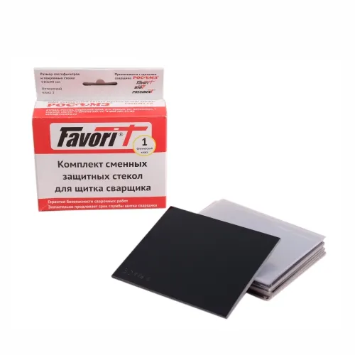Комплект состоит из: 5 минеральных стекла-светофильтра и 5 поликарбонатных покровных стекла к щиткам сварщика РОСОМЗ всех серий с пассивным светофильтром.