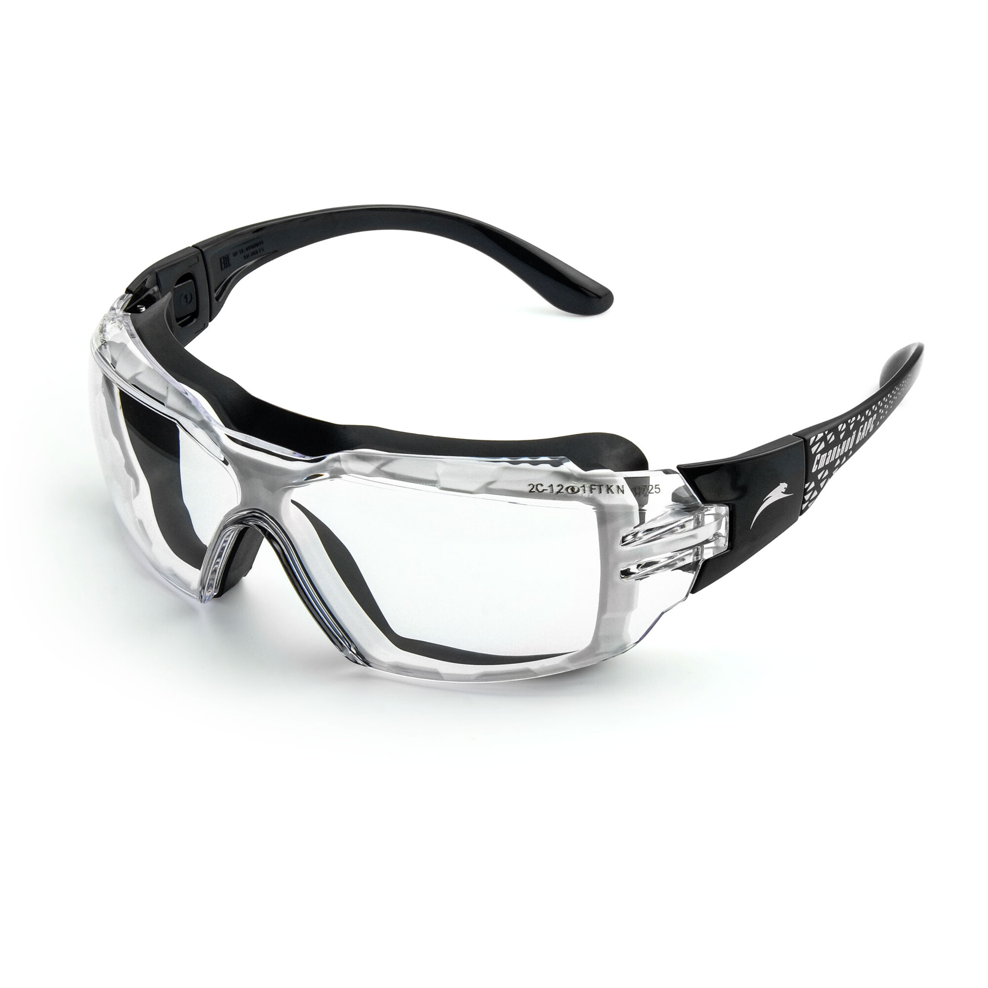 - Стекло с бесцветным УФ-светофильтром из поликарбоната с покрытием СтронГлас (двустороннее твердое покрытие высокого качества, устойчивое к запотеванию, истиранию и царапинам, сохраняющее свои свойства при интенсивной эксплуатации, в т.ч. при работе с абразивами).