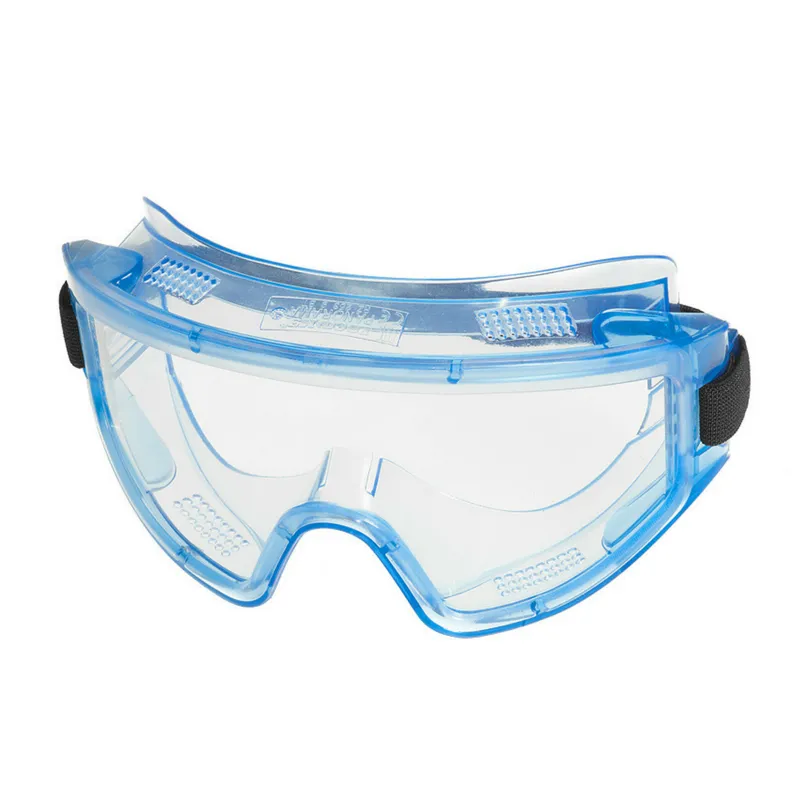 Очки с прямой вентиляцией с панорамным защитным бесцветным стеклом из поликарбоната (РС super) с незапотевающим покрытием изнутри, снаружи устойчивым к истиранию и царапанию.