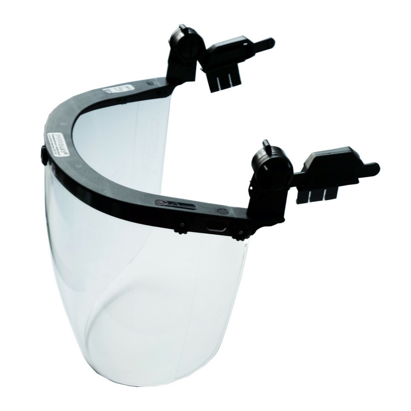 Крепление щитка к защитной каске осуществляется за счет поворотно-фиксирующего устройства, изготовленного из термостойкого материала, устойчивого к износу и гарантирующего надежную фиксацию лицевого щитка в двух положениях «вверх-вниз».