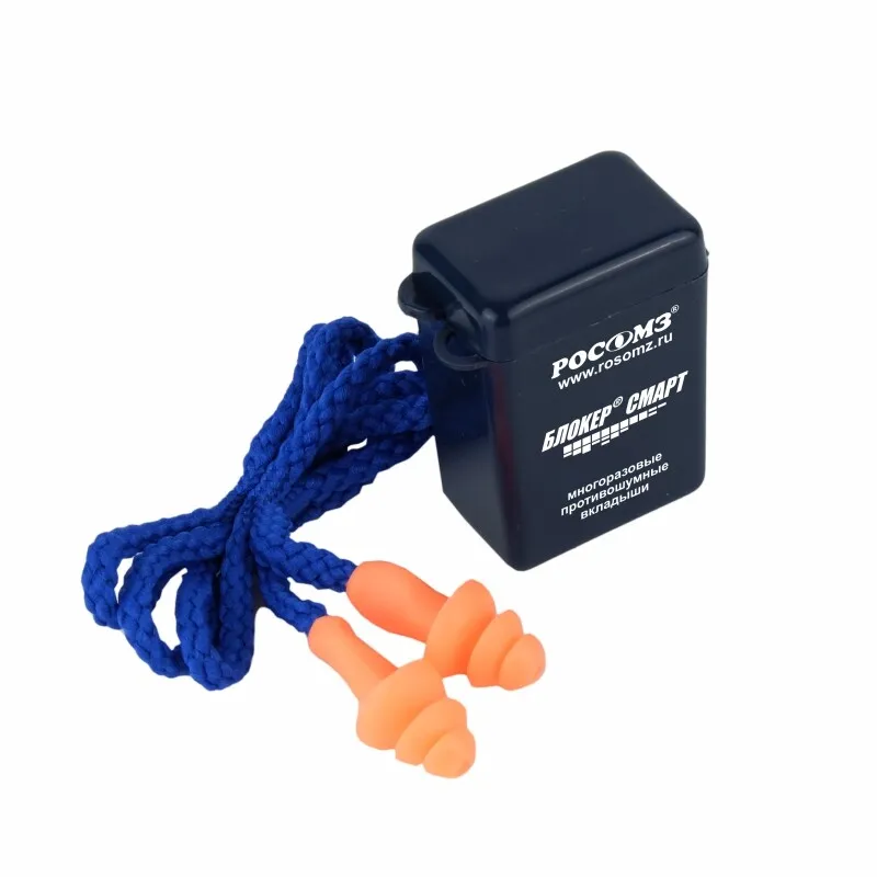 Средства индивидуальной защиты органа слуха. Противошумные вкладыши (беруши) изготовлены из термоэластопласта (ТЭП). Адаптируются к форме слухового канала, обеспечивая комфорт даже при длительном ношении. Соединительный шнур предотвращает потерю вкладышей, выполнен из приятного на ощупь хлопка.