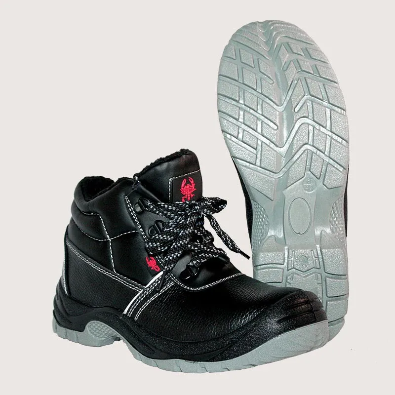 Ботинки «Скорпион-Зима» утепленные ПУ/ТПУ Натуральная кожа – двухслойная подошва выполнена из ПУ/ТПУ – удобная колодка обеспечивает комфорт при длительной носке Цвет: чёрный Верх: натуральная кожа Стелька: спортивная Подносок: термопласт Подкладка: иск.мех Подошва: ПУ/ТПУ