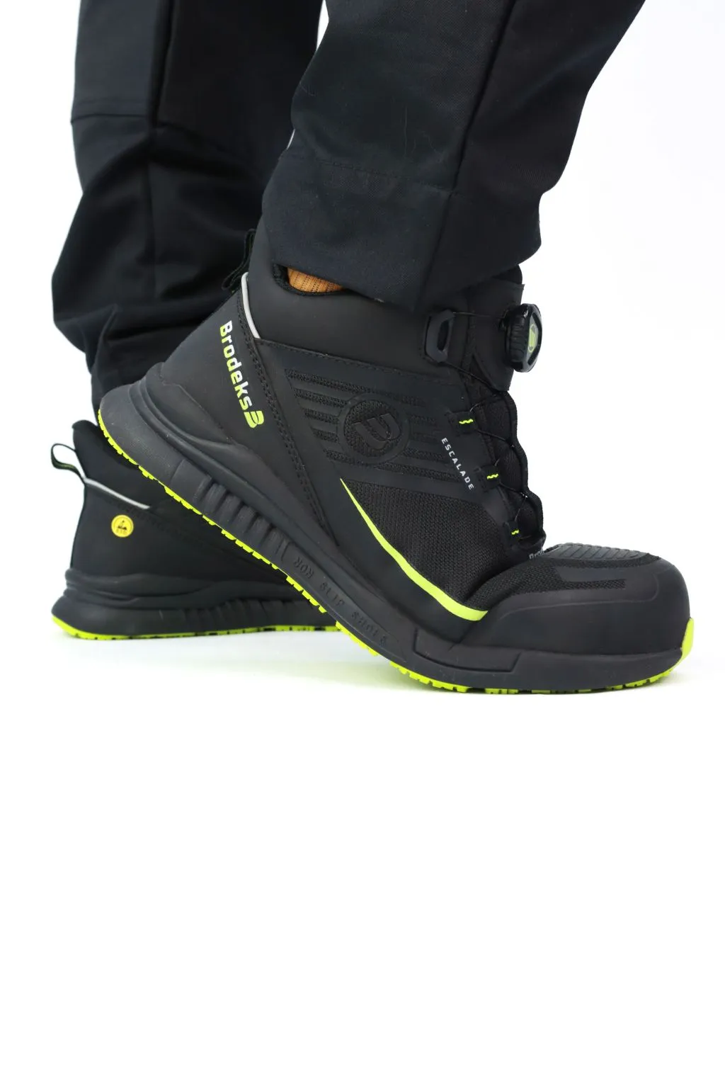 Рабочие ботинки Brodeks Escalade - технологичная обувь для ИТР, руководителей и работников, сочетающая спортивный комфорт и стандарты безопасности. Система быстрой фиксации и верх из микрофибры с ТПУ-усилением гарантируют мобильность и долговечность. Антистатическая защита (ESD) и композитный подносок делают их идеальными для лабораторий и высокотехнологичных цехов, обеспечивая легкость кроссовок при строгом соблюдении норм охраны труда. Подходит для строительных, производственных, монтажных и отделочных и других видов уличных работ в летний период и работы внутри помещений.