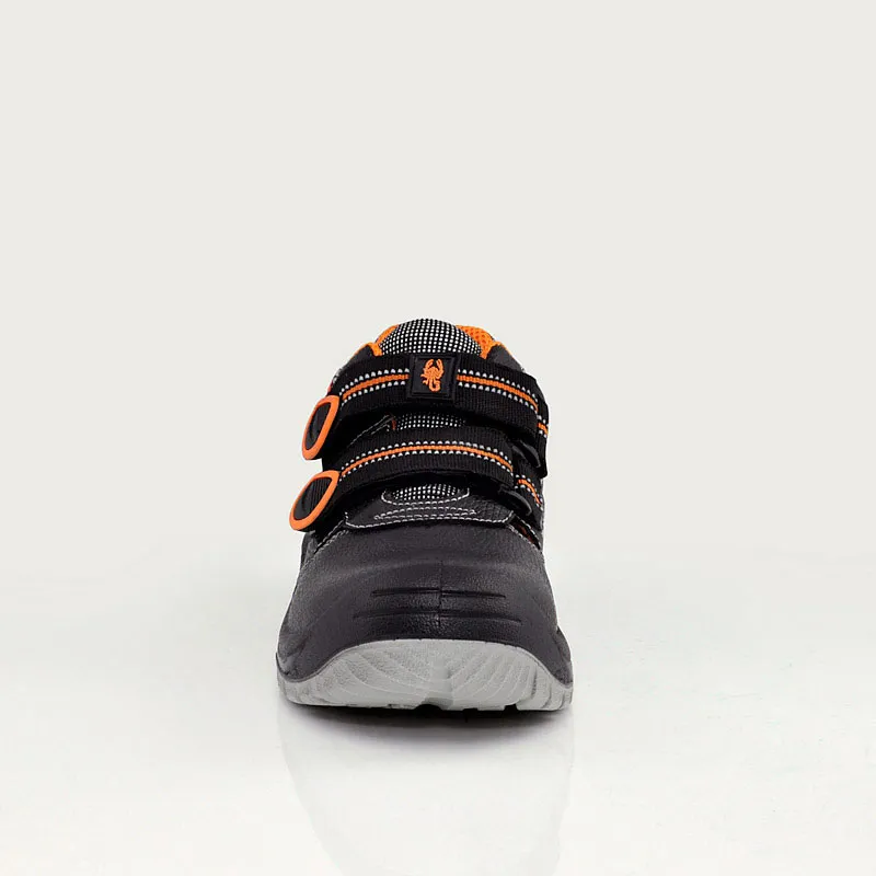 Полуботинки изготовлены без применения металлической фурнитуры, что позволяет применять эту модель в энергетической промышленности и на работах, предусматривающих прохождение работников через металлодетекторы. Перфорация обеспечивает воздухообмен и комфорт во время носки. Фиксируются на стопе при помощи ремней с контактной лентой велькро.