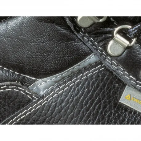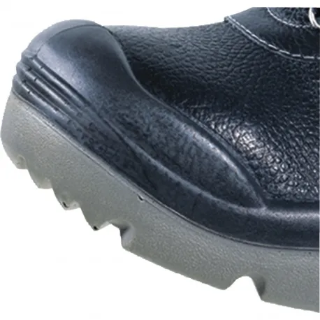 Ботинки из пигментированного кожевенного спилка. Влагонепроницаемые. Металлический защитный подносок. Литьевой метод крепления подошвы. Подошва двухслойная, с наплывом на носочную часть, устойчивая к проколам (вшитая стальная стелька) и к скольжению (тест SRC). Съемная формованная стелька.