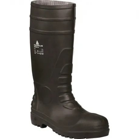 Сапоги из поливинилхлорида (ПВХ). Металлический защитный подносок. Литьевой метод крепления подошвы. Подошва противоскользящая двухслойная – ПВХ и нитрильный каучук, устойчивая к маслам и нефтепродуктам, кислотам, щелочам.