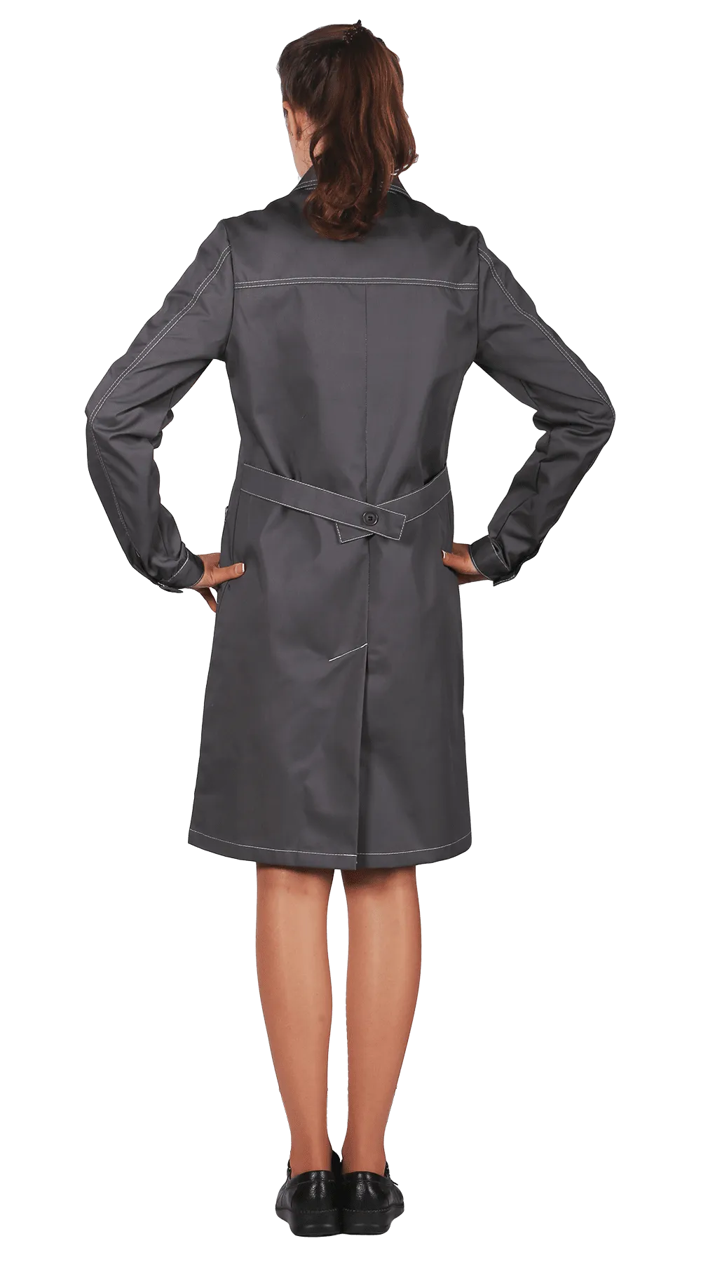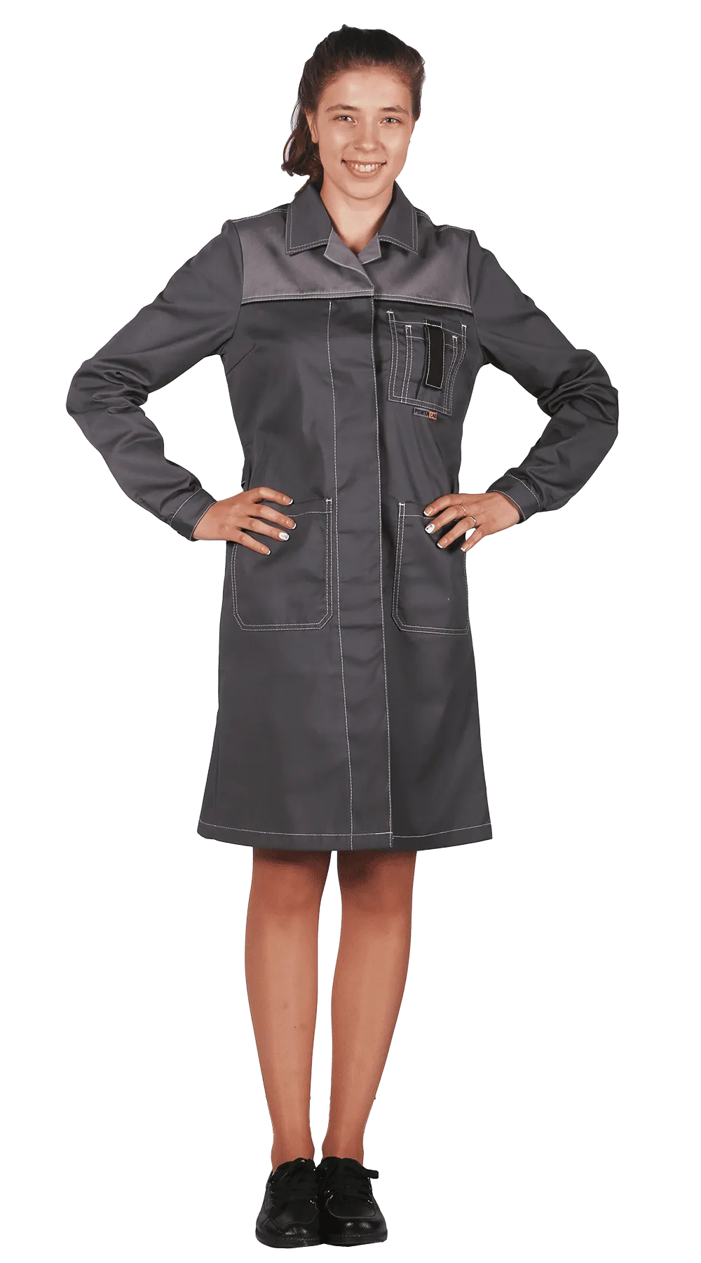 Выполнен из прочной и плотной ткани TC TWILL, прошит сверхпрочными толстыми (70АП) нитками контрастного светло-серого цвета с армированным сердечником. Купить рабочий халат можно оптом и в розницу в нашем интернет-магазине.