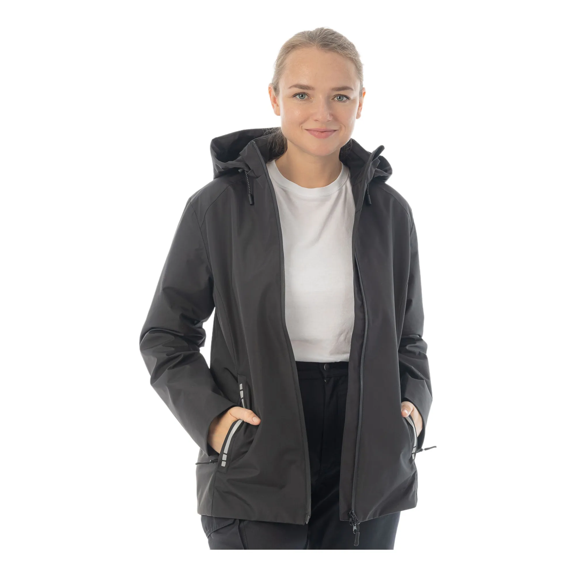 Софштелл (92% полиэстер, 8% эластан), мембранная ткань: водонепроницаемость 10 000 мм, дышащая способность: 5 000 г/м²/24 час, плотность 310 г/м2, DWR-пропитка