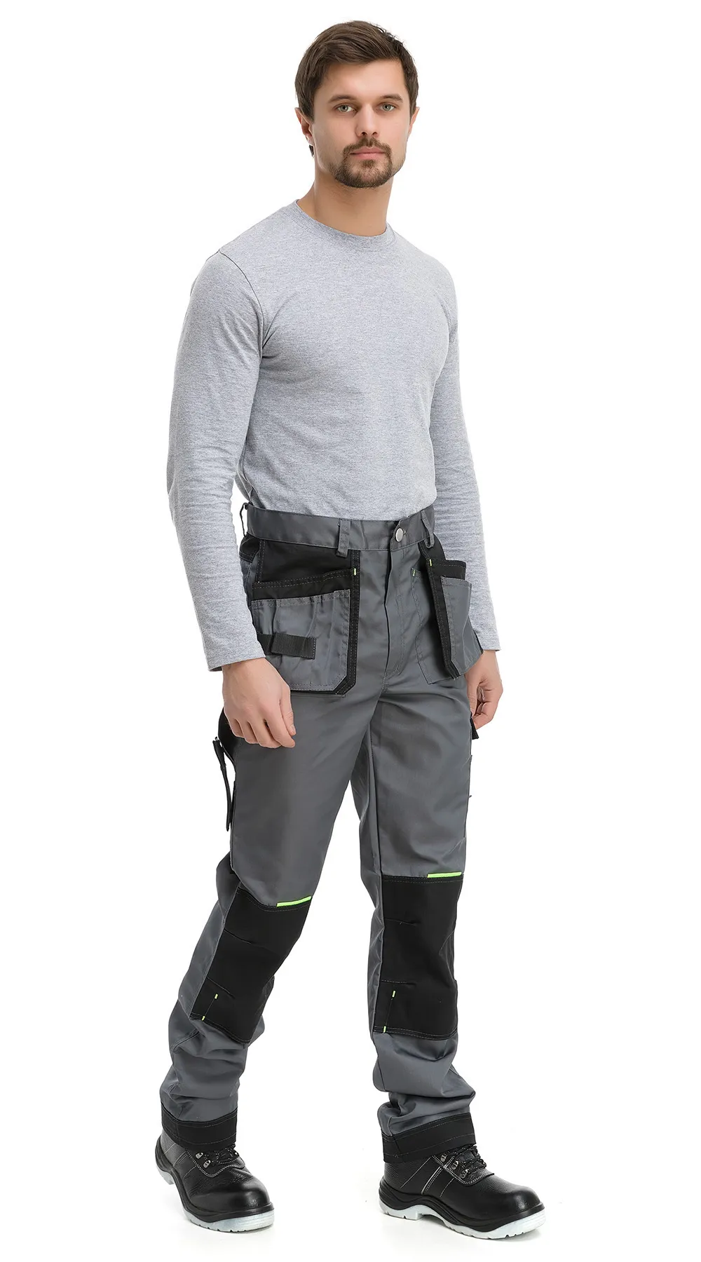 Данное изделие состоит из куртки и брюк. Куртка укороченная с центральной супатной застежкой на молнию и контактную ленту, с притачным поясом, с втачными рукавами и отложным воротником. Ширина куртки по поясу регулируется хлястиками на кнопках. Усиления в области коленей предназначены для вставки амортизирующих вкладышей. Куртка оснащена функциональными карманами, в том числе на рукаве и прозрачным пластиковым карманом для бейджа (пропуска). Брюки имеют множество функциональных и удобных карманов, в которых можно разместить самый необходимый инструмент, расходные и крепежные материалы.