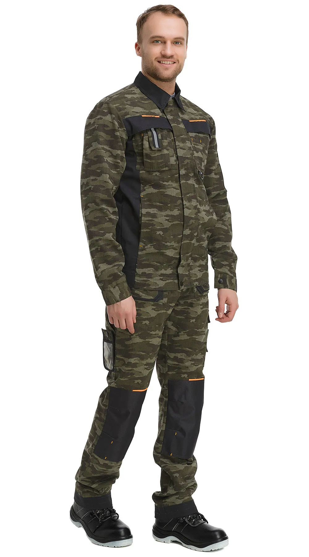Куртка укороченная с центральной супатной застежкой на молнию и контактную ленту, с притачным поясом, с втачными рукавами и отложным воротником. Ширина куртки по поясу регулируется хлястиками на кнопках. Усиления в области коленей предназначены для вставки амортизирующих вкладышей. Куртка оснащена функциональными карманами, в том числе на рукаве и прозрачным пластиковым карманом для бейджа (пропуска).