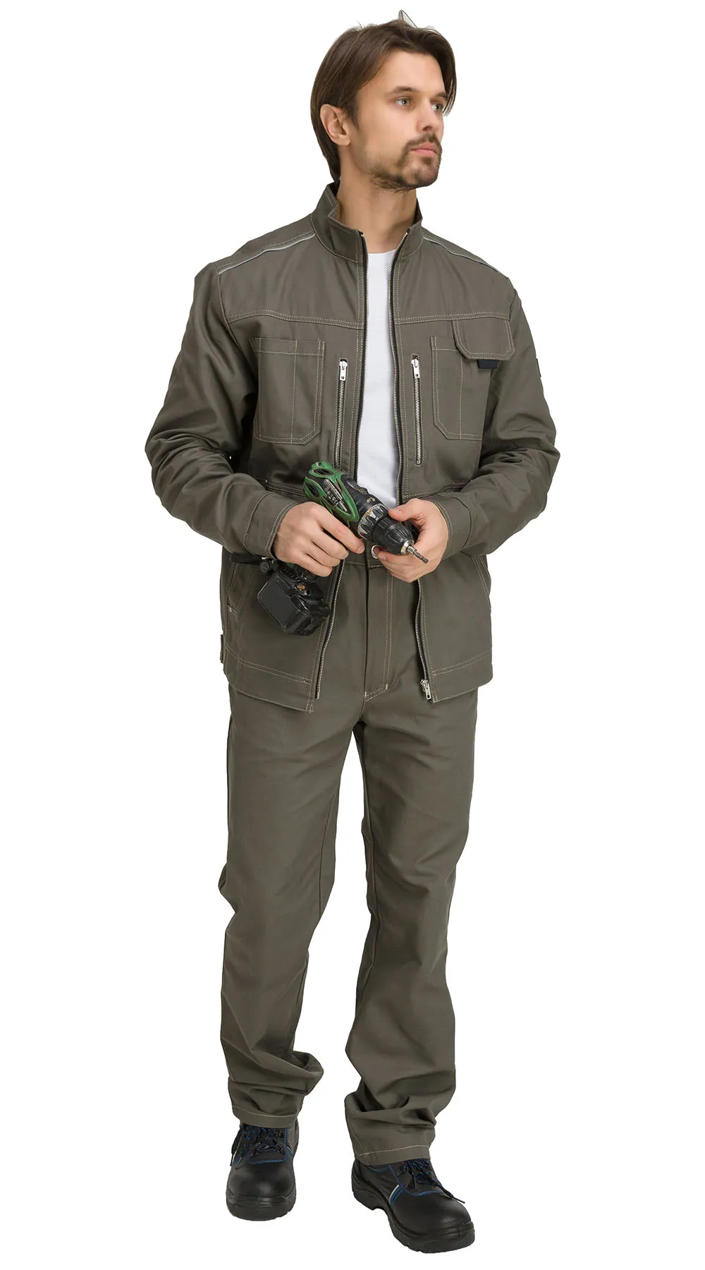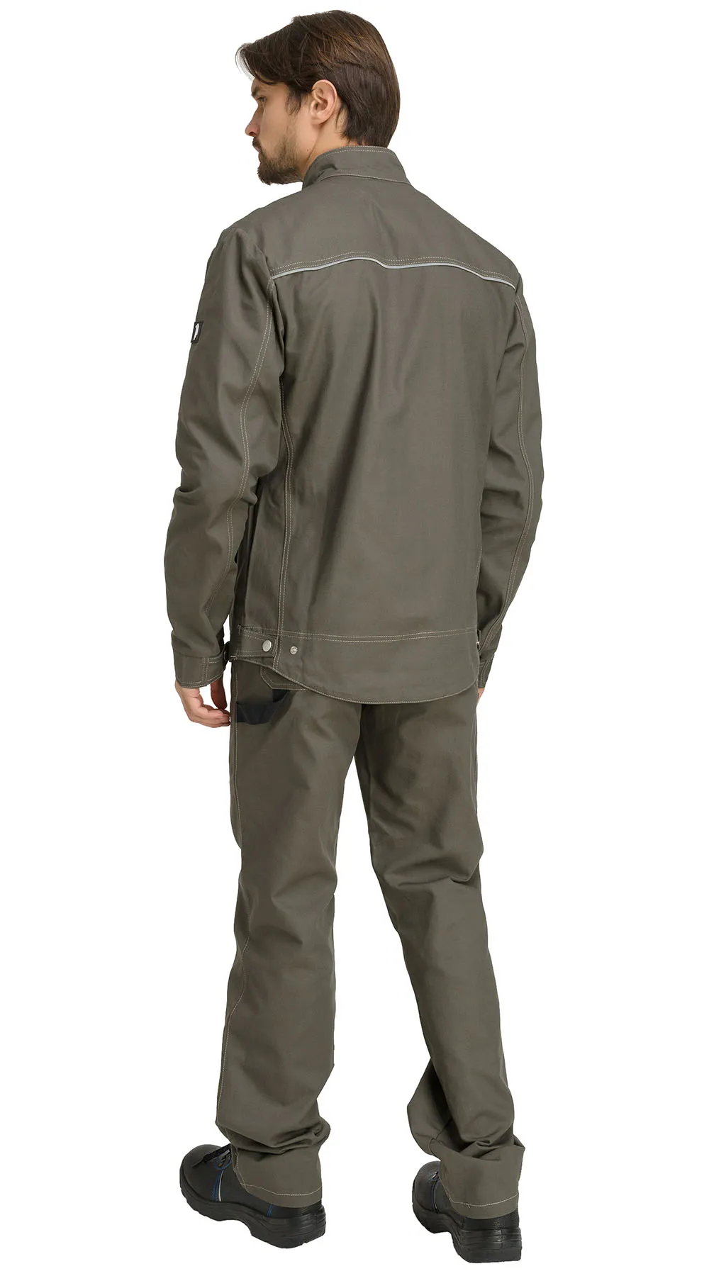Брюки с застежкой гульфик на тесьму-молнию. На передних половинках карманы с наклонным входом с листочкой с нижним втачным углом. По нижнему краю кармана установлен хольнитен. Задние половинки с верхними накладными карманами. Вход накладных карманов усилен хольнитенами.