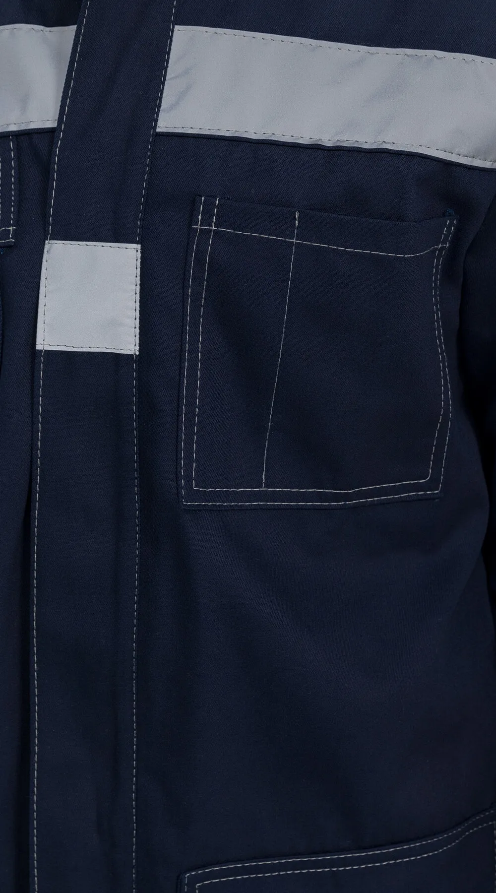 Куртка выделяется своей удобной центральной супатной застежкой на 4 петли и пуговицы, в дополнение к одной сквозной застежке. Втачные рукава и отложной воротник придают элегантность, обеспечивая комфорт в течение всего рабочего дня. Функциональность модели подчеркивается четырьмя накладными карманами с клапанами, которые надежно застегиваются на контактную ленту. На левом нагрудном кармане предусмотрено специальное отделение для ручки, что очень удобно для тех, кто ценит порядок в мелочах. Декоративный кант СВ на спинке и кокетках придает особую яркость внешнему виду.