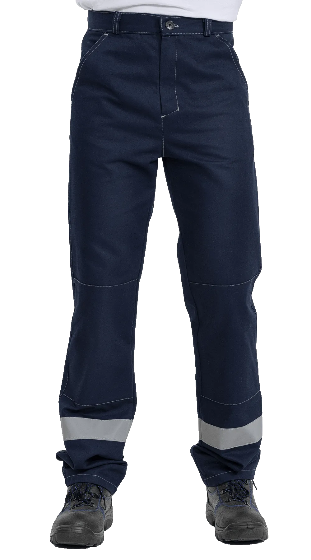 Брюки оснащены притачным поясом, надёжной застежкой-гульфиком на петли и пуговицы, а также функциональными карманами. Передние половинки дополнены боковыми накладными карманами, а задние — двумя карманами для необходимых мелочей. Двойной скошенный боковой карман на правом боку — практичное решение для активного рабочего дня.