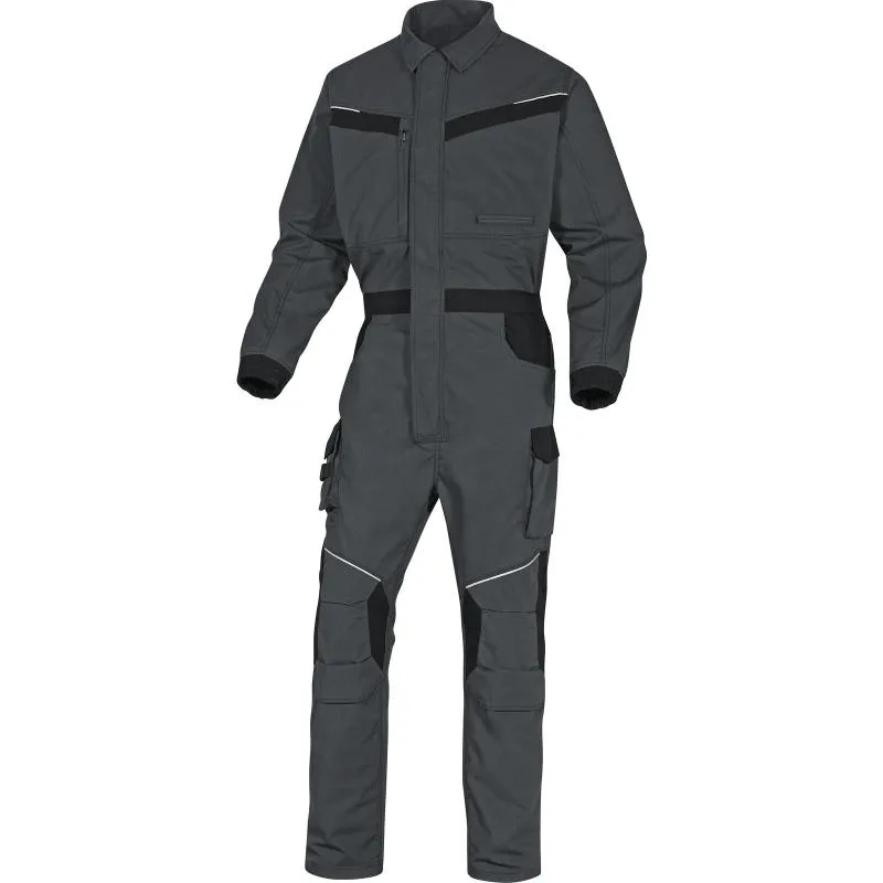 Комбинезон с застежкой на двухстороннюю замок – молнию, с ветрозащитной планкой на контактной ленте и кнопках, с отложным воротником. Большое количество накладных и прорезных карманов. Пояс с эластичными вставками. Рукава с локтевым швом, манжеты с эластичной вставкой, застегивающихся с помощью контактной ленты. Усилительные накладки в области колена в виде кармана для наколенника. Усиленная вставка в области промежности. Усиленные тройные швы. Повышенные прочностные свойства ткани благодаря технологии Рипстоп.