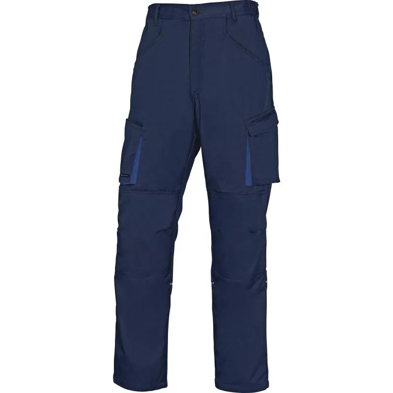 Передняя половинка брюк из двух частей: верхней и нижней. На верхней части – два прорезных боковых кармана с наклонным входом. На левой штанине сбоку в области бедра расположен накладной карман с клапаном, застегивающимся на контактную ленту; на правой – накладной карман, разделенный строчкой на две части. На нижней части - усилительные накладки в области колена в виде кармана для наколенника, застегивающимся на контактную ленту сбоку кармана.