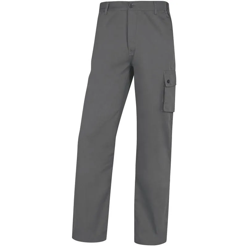 Брюки с застежкой-молнией в среднем шве передних половинок брюк, с притачным поясом. Спереди на верхней части – два прорезных боковых кармана с наклонным входом. На левой штанине сбоку в области бедра расположен накладной карман с клапаном, застегивающимся на кнопки. Сзади на верхней части с правой стороны расположен накладной карман. Ниже - накладной карман с косым входом для линейки. Пояс с застежкой на петлю и пуговицу, с вставками по бокам из эластичной ленты, со шлевками.