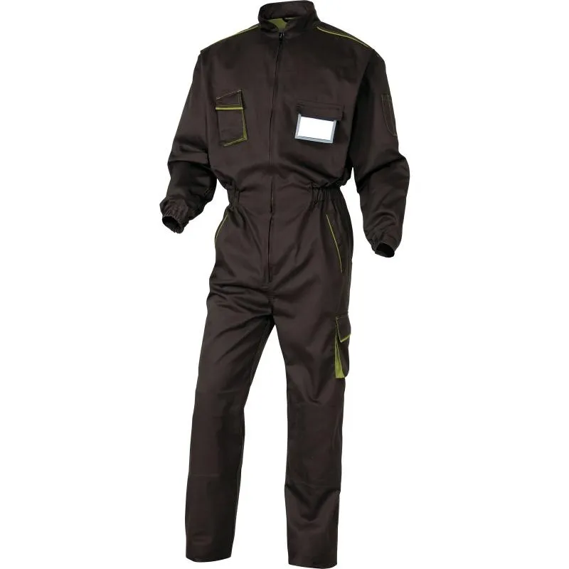 Комбинезон с застежкой на центральную двухстороннюю замок – молнию, с воротником-стойкой. Большое количество накладных и прорезных карманов.