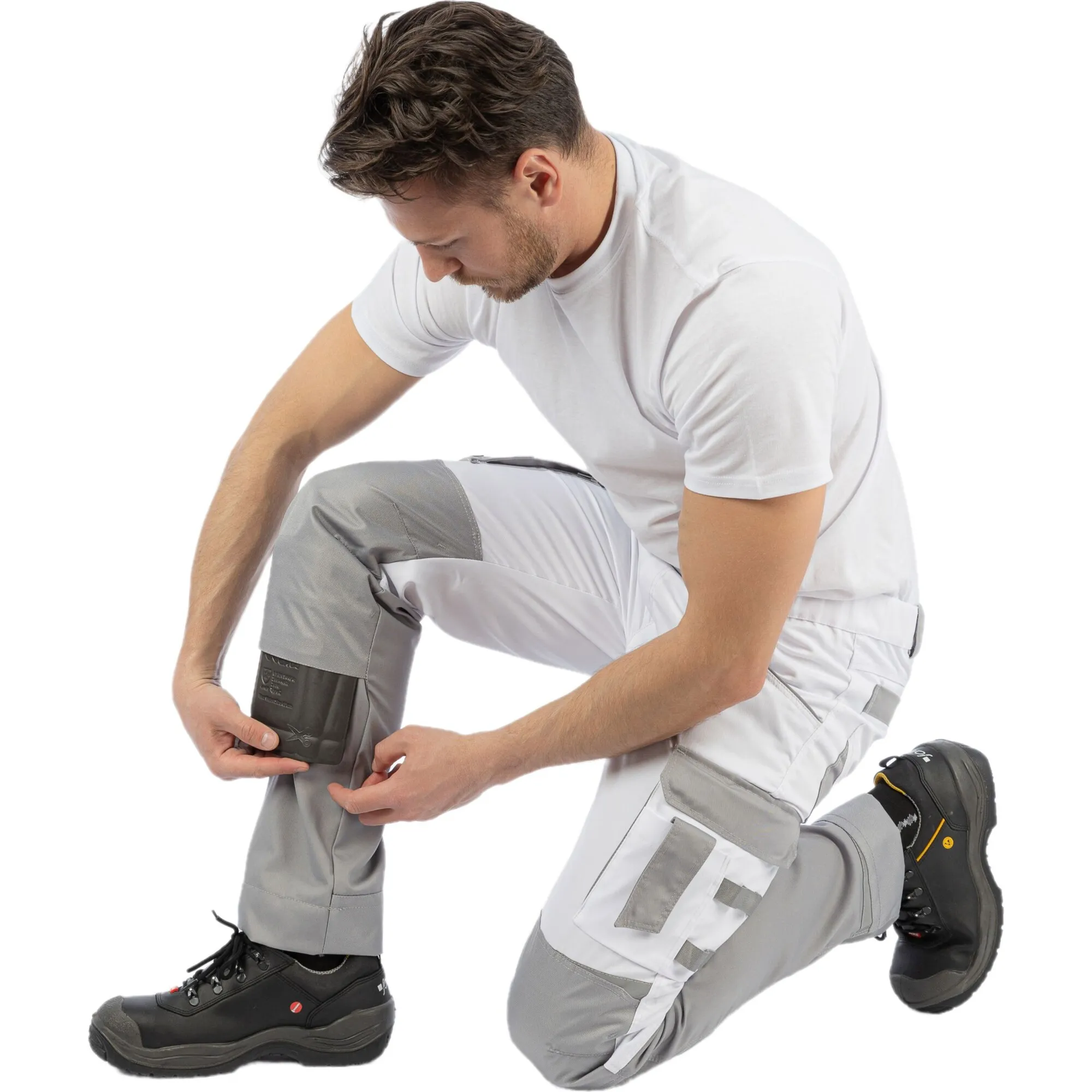 Брюки мужские летние Brodeks KS 302, белый/серый – практичные брюки для работы в помещении или на улице летом. Хорошо защищают от общепроизводственных загрязнений. Брюки белого цвета с серыми вставками идеально подойдут для выполнения малярных работ, и особенно для работы в условиях сильной жары и яркого солнца.