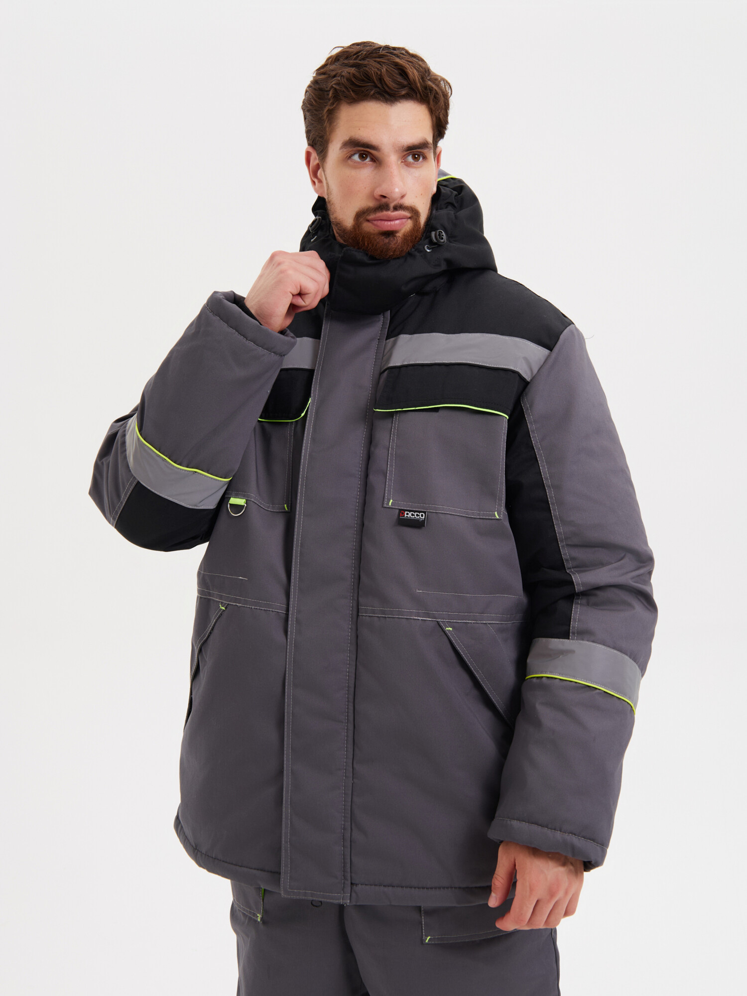 (77281) Костюм утепленный "Система" куртка+п/к, тк.смес.240, цв.т.СЕР/черн/лимон