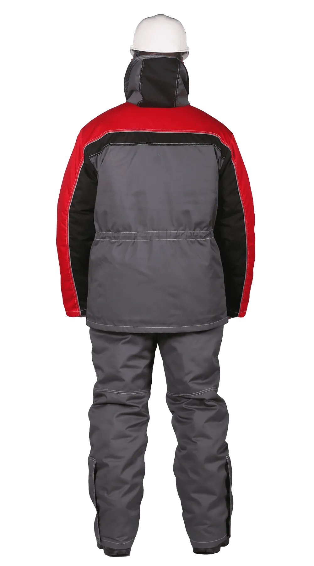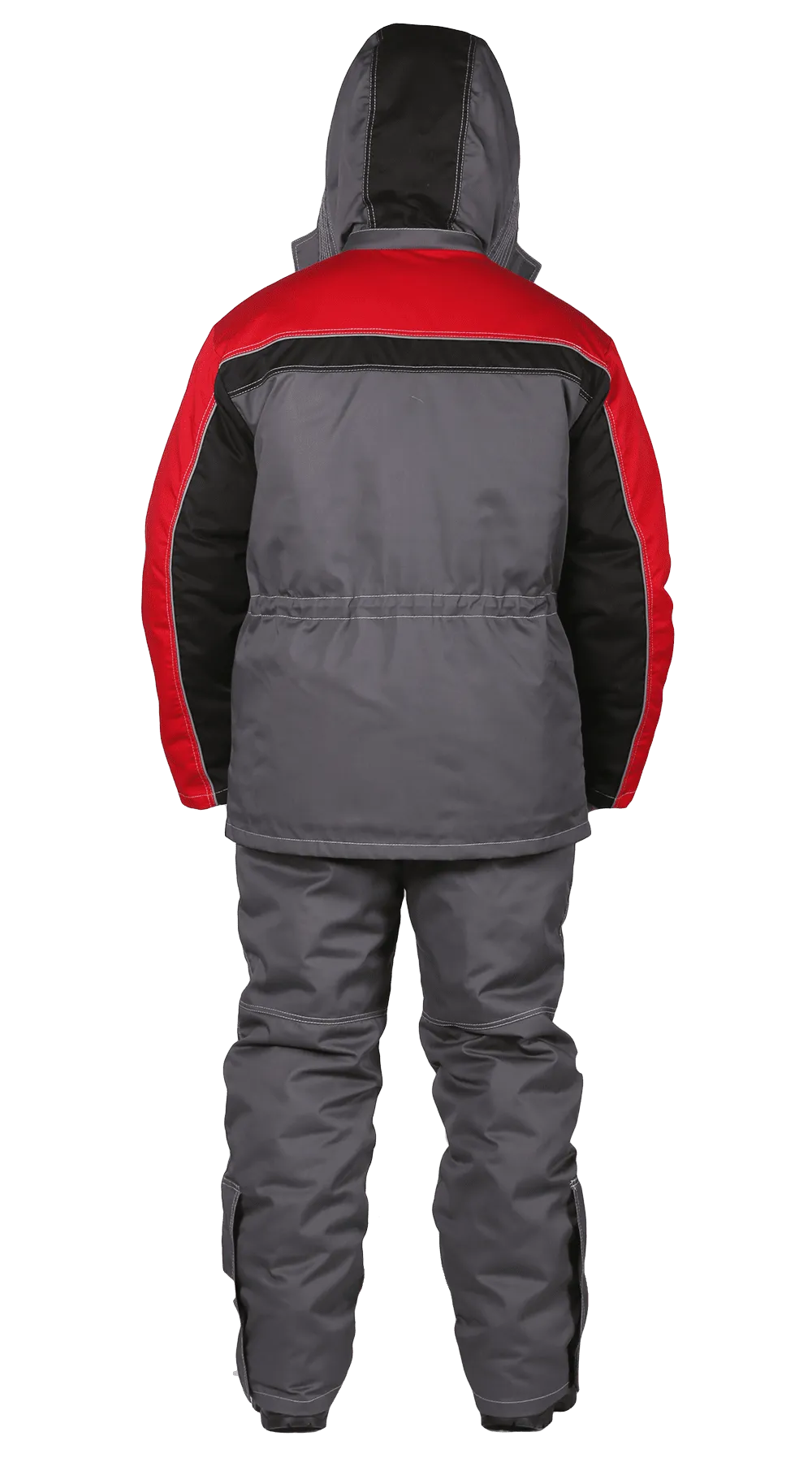 Куртка выполнена из прочной и плотной ткани TC TWILL, прошита сверхпрочными толстыми (70АП) нитками контрастного светло-серого цвета с армированным сердечником. Центральная супатная застежка на усиленную морозостойкую двухзамковую молнию, контактную ленту и пуговицы, втачные рукава, воротник-стойка и пристегивающийся на молнию капюшон отделаны с внутренней части флисом. Рукава с напульсниками из флиса и ветрозащитными манжетами, объем по рукавам регулируется патами. По линии талии обьем регулируется кулисой. Куртка оснащена двумя боковыми внутренними и двумя нагрудными накладными многофункциональными карманами. Вход в боковой карман расположен в шве соединения частей полочки и закрывается на морозостойкую молнию. Под ветрозащитным клапаном – потайной карман с молнией (для документов формата А4). Утепленная подстежка пристегивается на молнии и пуговицы, оснащена ветрозащитной юбкой, двумя внутренними накладными карманами. Внешний слой утепленной подстежки выполнен из ветрозащитной ткани, обеспечивающей не продуваемость изделия в сильный ветер при низких температурах, комфортный микроклимат под одеждой и исключает миграцию утеплителя.