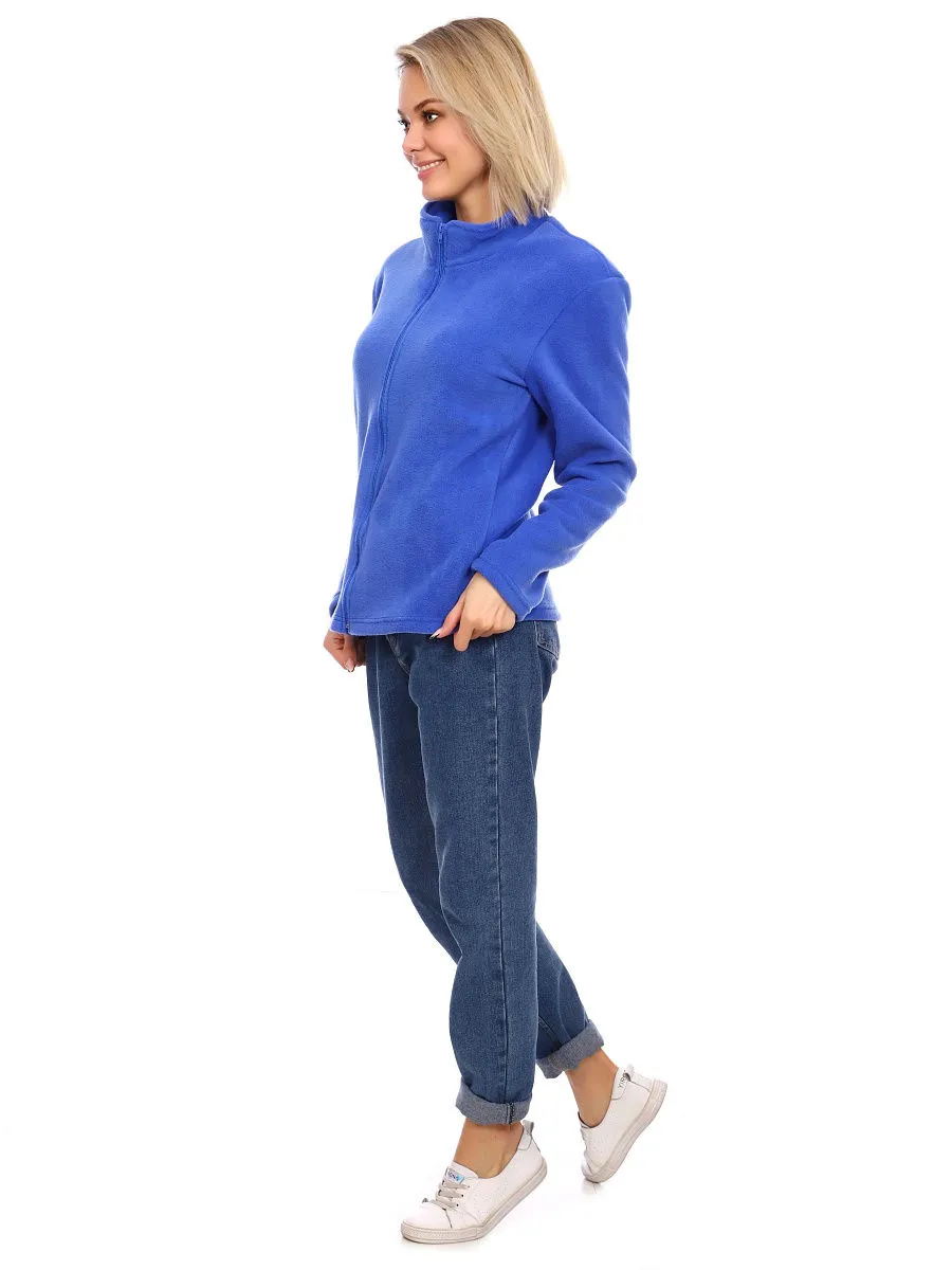 Толстовка женская из флиса, длинная разъемная молния. Воротник стойка, без карманов. На рукавах резинки.