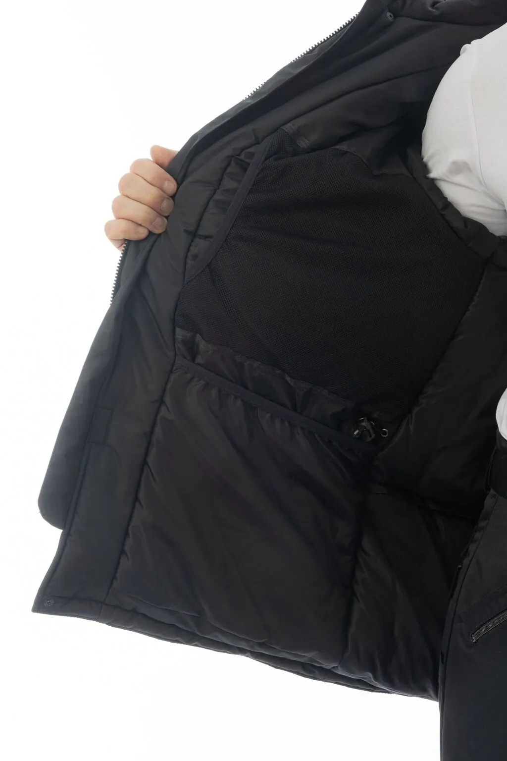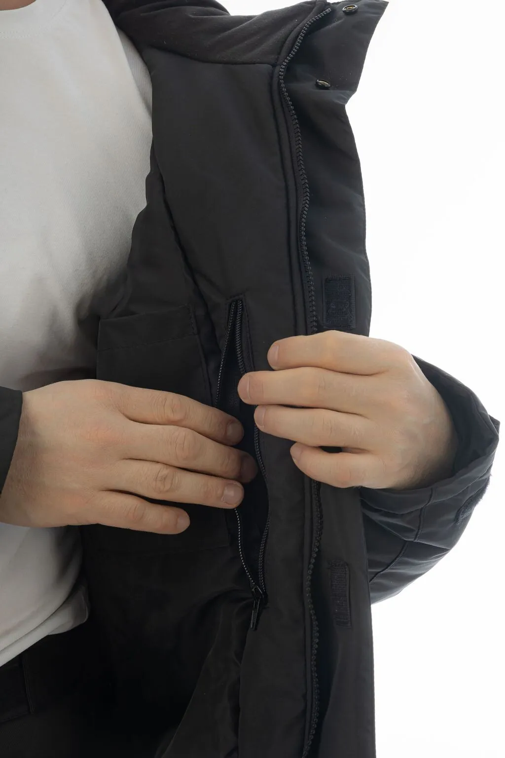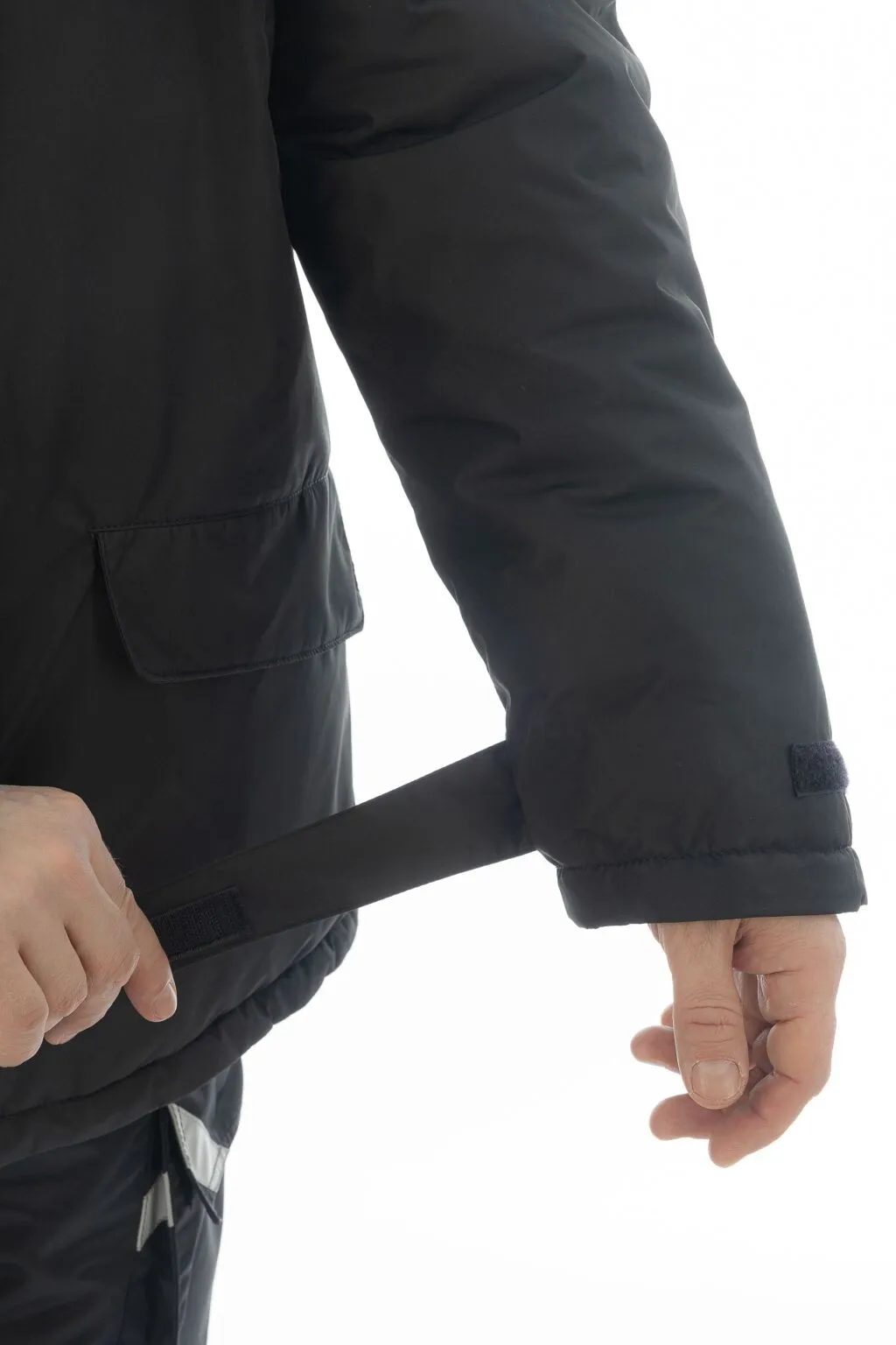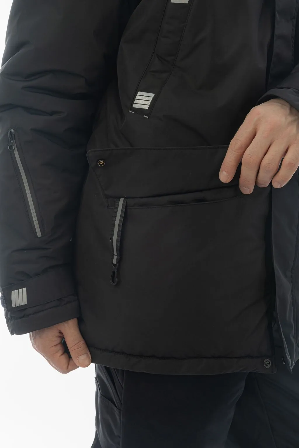 Парка мужская зимняя KW 204 черного цвета - зимняя рабочая куртка для руководителей и ИТР. Сочетает в себе презентабельный внешний вид, удобство и качество исполнения. Трехслойная морозостойкая мембрана не пропускает воду и отводит влагу. При низких температурах ткань куртки не деформируется.