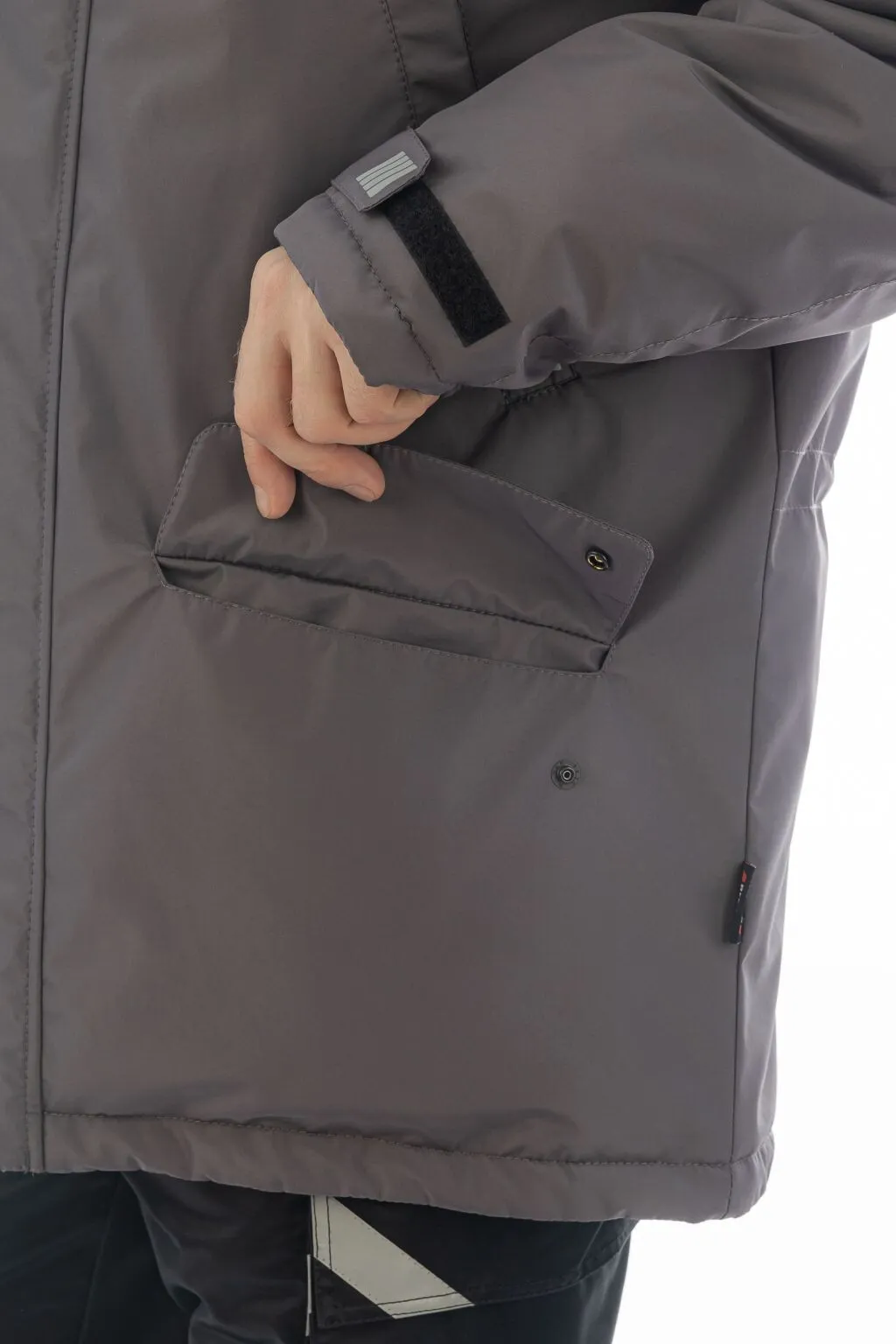 Парка мужская зимняя KW 204 черного цвета - зимняя рабочая куртка для руководителей и ИТР. Сочетает в себе презентабельный внешний вид, удобство и качество исполнения. Трехслойная морозостойкая мембрана не пропускает воду и отводит влагу. При низких температурах ткань куртки не деформируется.