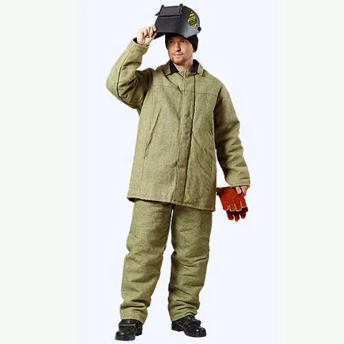 Куртка с центральной потайной правосторонней застёжкой на пуговицы.На полочках в отрезных бочках внутренние карманы.На воротнике накладка из х/б ткани.Рукава двухшовные втачные с напульсниками по низу.Спинка со швом.Кокетка,переходящая на полочки.По линии притачивания кокетки к спине вентиляционные отверстия.В верхней части бочка вентиляционные отверстия.Брюки с притачным задним поясомс карманами по бокам,с пятью шлевками.Передние половинки брюк с цельнокроенным поясом.В вершинах шаговых швов вентиляционное отверстия. Модель с притачным утеплителем из ватина, полкладка бязь.