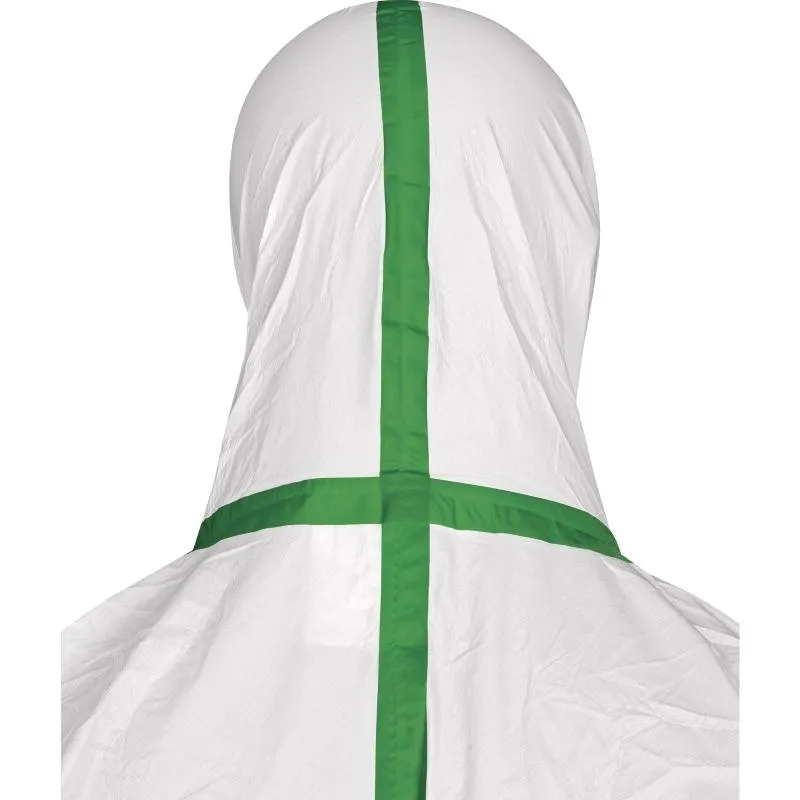 Комбинезон с эластичным капюшоном. Нетканый микропористый ламинированный материал. Двухзамковая застежка-молния, закрытая защитной планкой. Эластичная резинка вокруг лицевого выреза капюшона, на талии и лодыжках. Трикотажные манжеты. Индивидуальная упаковка.
