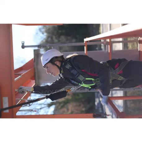 Привязь с поясным ремнем с 2 точками крепления для защиты от падений (спинная, грудная). Материал ремней – полиэстер. Регулировка привязи осуществляется с помощью 3 автоматических пряжек и 2 несъемных пряжек на плечевых лямках. Индикатор падения. Мягкая подкладка на спине. Пояс с термоформованной зоной спины. Материал – полиамид. 3 точки крепления (2 боковые и 1 задняя) для позиционирования. 1 автоматическая пряжка, при помощи которой регулируется размер пояса. Испытана на 150 кг.