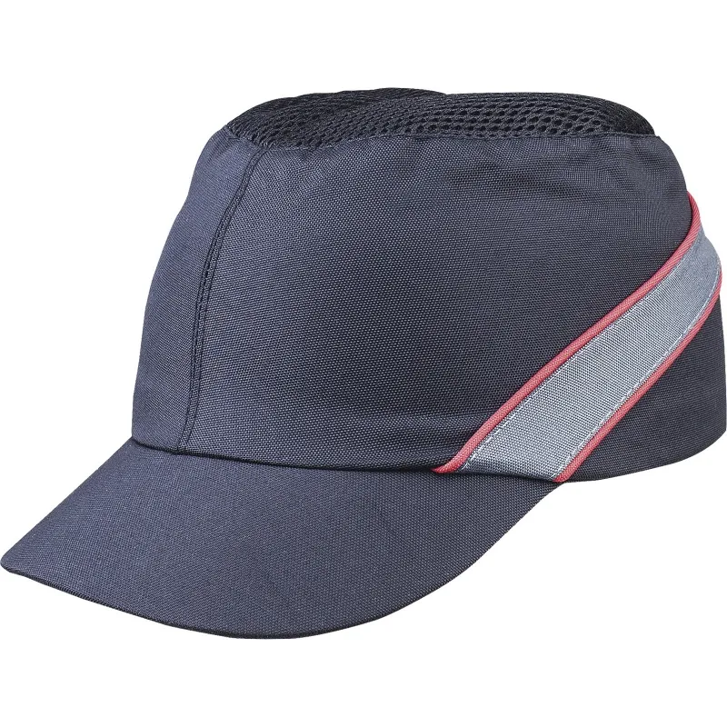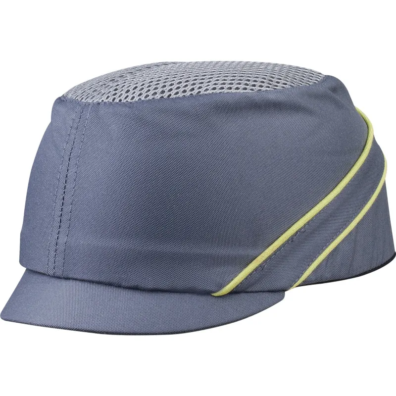 Каскетка для защиты от ударов, эргономичная. Материал верха – текстиль полиэстер/полиуретан, с вентилируемой сеткой. Длина козырька – 7/5/3 см. Ударопоглощающий съемный внутренний каркас из полиэтилена, со вставкой из EVA-полимера. Регулировка по обхвату головы от 55 до 62 см при помощи застежки на затылочной части.