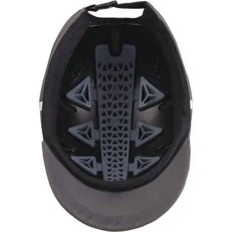 Каскетка для защиты от ударов, эргономичная. Материал верха – текстиль полиэстер/полиуретан, с вентилируемой сеткой, со вставками из светоотражающей ленты. Длина козырька – 5 см. Ударопоглощающий съемный внутренний каркас из полипропилена (PP), со вставкой из термоэластопласта (TPE). Регулировка по обхвату головы от 54 до 62 см при помощи ремешка на затылочной части.