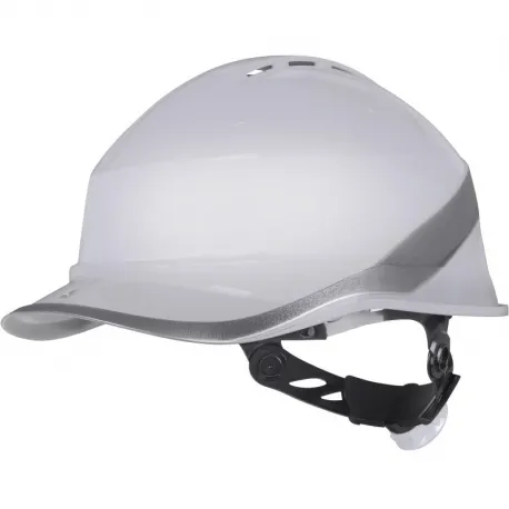 Защитная каска с вентиляцией из термопластика АБС в виде бейсболки с козырьком. Внутренняя оснастка из полиамида: 3 текстильных ремня с 8 точками крепления. Потовпитывающая вставка на лобовой части оголовья. Карманы для крепления очков, наушников, щитков. Регулируется по обхвату головы от 53 до 64 см при помощи системы затяжения ROTOR®. 2 возможных позиции размещения на голове: высокая и низкая. Защита против бокового сжатия. Стойкость к брызгам расплавленного металла.