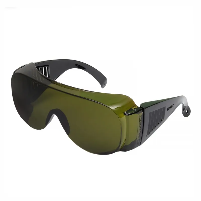 Универсальные очки с панорамным защитным стеклом-светофильтром увеличенного размера из поликарбоната зеленого цвета с твердым покрытием на наружной стороне и с незапотевающим покрытием на внутренней, обращенной к глазу, стороне.