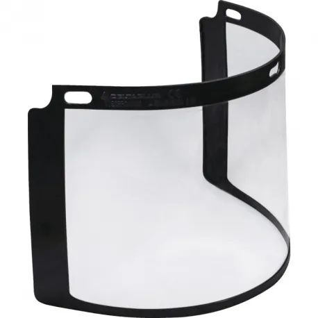 Лицевой щиток из литого прозрачного поликарбоната с пластиковой оправой. Размер – 36х17 см. Оптический класс - 1. Защита (спереди и сбоку) от летящих частиц (120 м/с) и УФ-излучения. Механическая устойчивость к экстремальным температурам. Применяется с держателями VISOR-HOLD MINI и VISOR-H. В комлекте – 2 щитка-экрана.