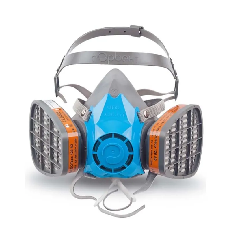 Полумаска в комплекте с фильтрами обеспечивает защиту органов дыхания от паро- и газообразных вредных веществ и аэрозолей (пыль, дым, туман), присутствующих в воздухе рабочей зоны.