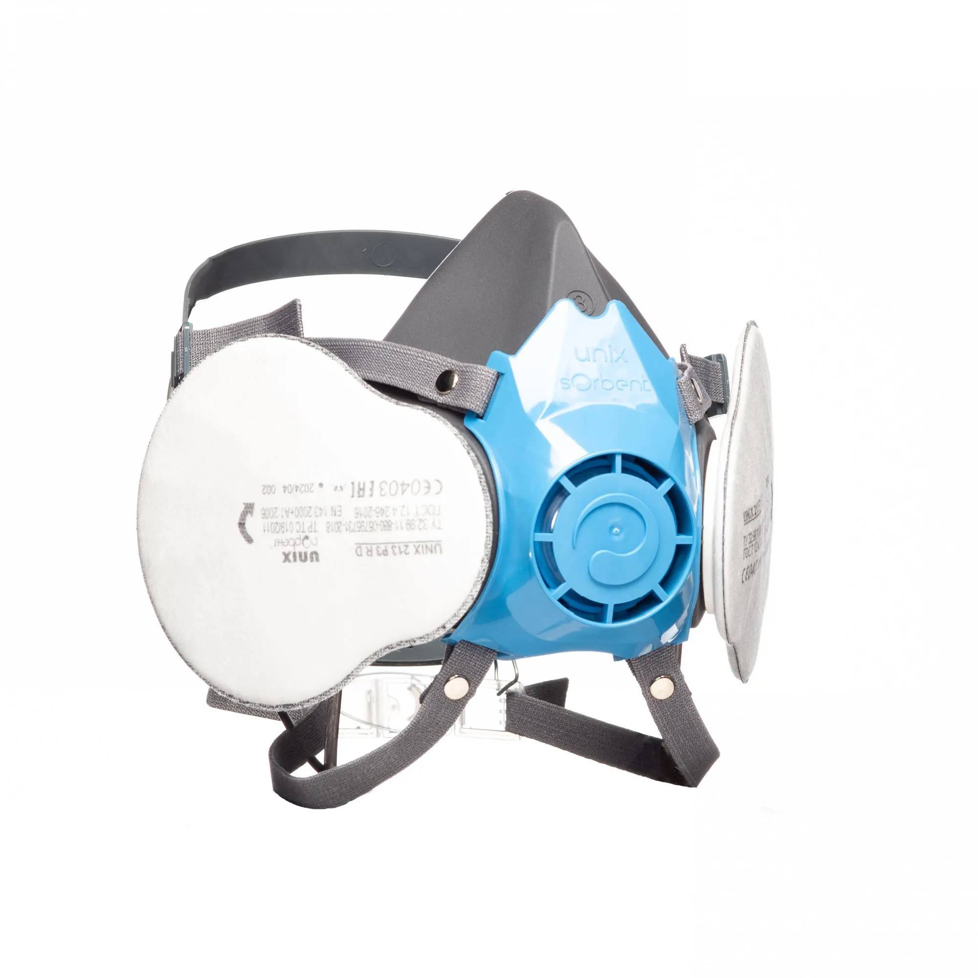 Респиратор комплектуется с двумя противогазовыми фильтрами UNIX со съемными противоаэрозольными фильтрами UNIX для защиты от газов, паров и аэрозолей.