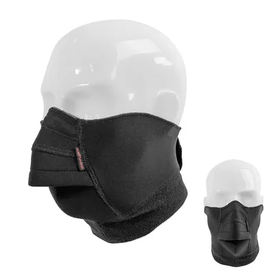 Ветрозащитная полумаска из неопрена надежно защищает лицо, для удобства пользователя в ней находится отверстие для вдыхаемого воздуха. Для лучшего прилегания полумаски к носу в области переносицы встроена гибкая пластина.