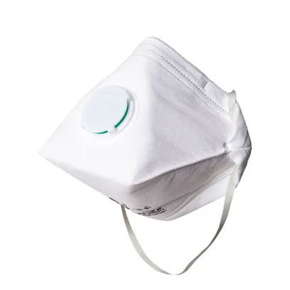 Мягкий гигиеничный складной респиратор. Клапан выдоха позволяет мембране не деформироваться и предотвращает концентрацию влаги под респиратором. На переносице – фиксирующий зажим.