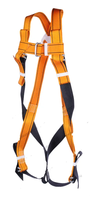 Страховочная привязь с наплечными и набедренными лямками СПР II Ж I, спиновой элемент крепления и передний элемент крепления.