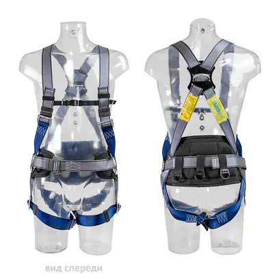 Индивидуальное защитное средство от падения с высоты. Привязь используется только в сочетании с одним из стропов с амортизатором: «Ампаро-430®», «Ампаро-440®» или «Ампаро-422®» или с регулируемым стропом «Ампаро-410®», «Ампаро-420®». Универсальная регулировка, эргономичный кушак, одно заднее и два боковых D-образных кольца, три дополнительные точки подвеса