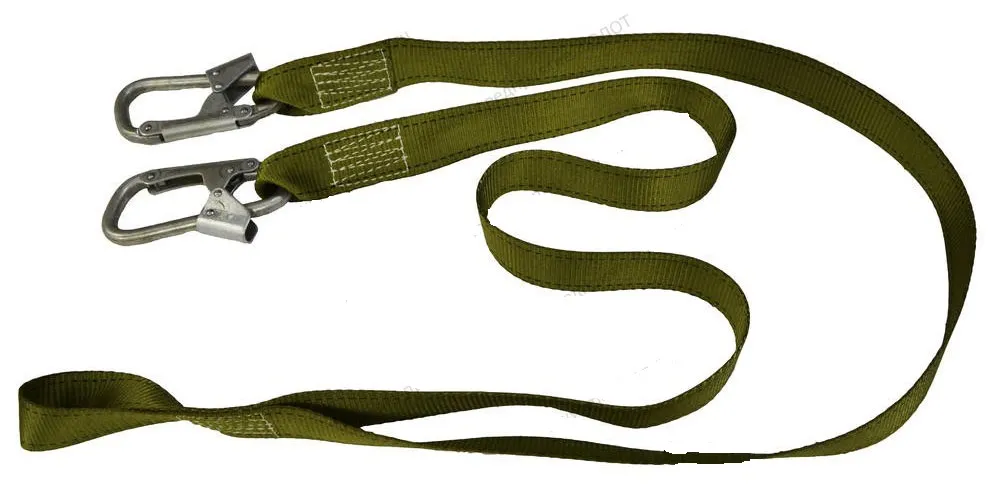 Длина стропа (одного плеча) – не более 2 м, длина не регулируется. Строп оснащён двумя антистатическими карабинами типа К4, которые установлены в петлях стропа и предназначены для присоединения к анкерным точкам конструкции; для присоединения к крепежным элементам привязи служит петля на другом конце стропа, крепление стропа на привязи осуществляется посредством завязывания петли методом «удавки» в отверстии д-кольца. Размер зева карабина К4 — 20 мм, зев закрывается и фиксируются от открывания автоматически.