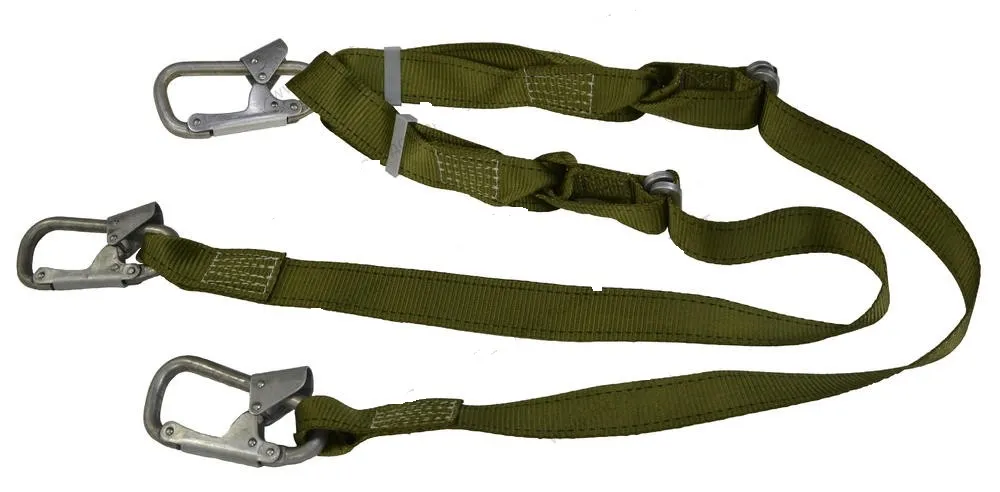 Длина стропа (одного плеча) – не более 2 м, длина регулируется, регулирование осуществляется передвижением по фалу стропа регулировочных элементов, состоящих из овальных колец. Строп оснащён тремя антистатическими карабинами типа К4, два из которых установлены в петлях плеч стропа и предназначены для присоединения к анкерным точкам конструкции; третий, установленный с противоположной стороны стропа, служит для присоединения к крепежным элементам привязи. Размер зева карабина К4 — 20 мм, зев закрывается и фиксируются от открывания автоматически.