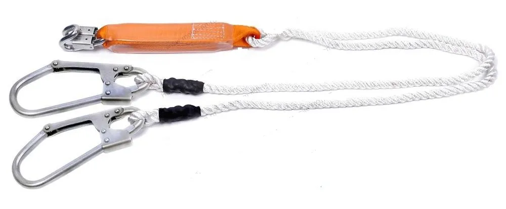 Двуплечевой (двойной) строп из полиамидного каната, с амортизатором, с двумя карабинами Строп Вда КI-50 — большой, круглый карабин и одним Кбс — карабин быстрого соединения.