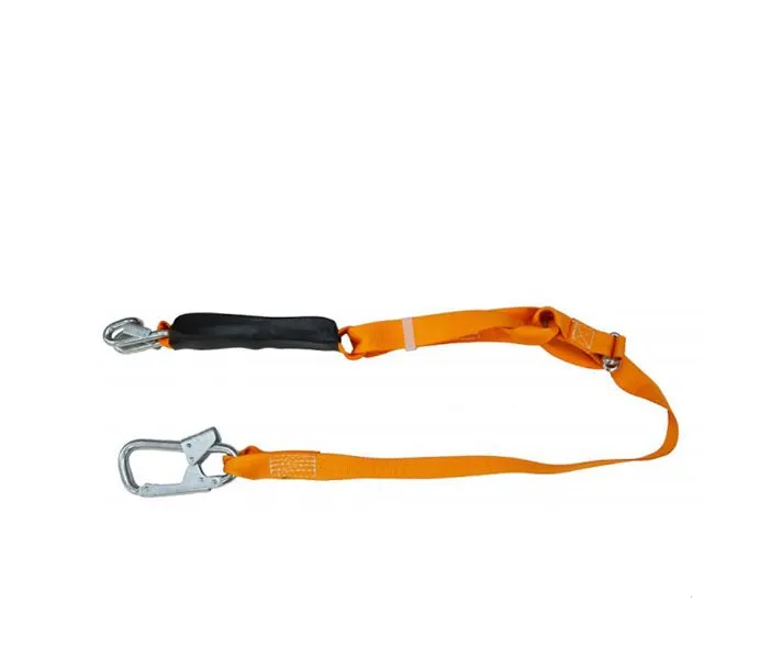 Строп из полиамидной ленты с двумя карабинами, регулируемый, амортизатор Строп Аа рег. + Кбс: КI — круглый карабин и Кбс — карабин быстрого соединения, регулируемый, с амортизатором.