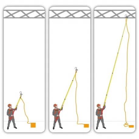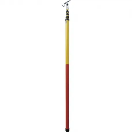 Телескопическая штанга из 5 секций с поворотным наконечником в форме крюка на конце. Материал: штанга – стекловолокно, наконечник – алюминий. Длина в сложенном состоянии - 2 м. Длина в разложенном состоянии от 2 до 8 м. Допустимая нагрузка на наконечник – 5 кг. Электроизоляция до 30 кВ. В комплект входит сумка-чехол для транспортировки и хранения штанги.